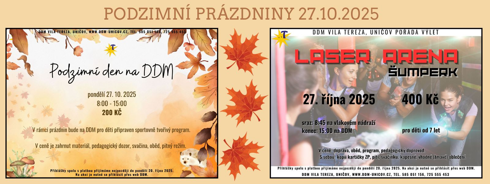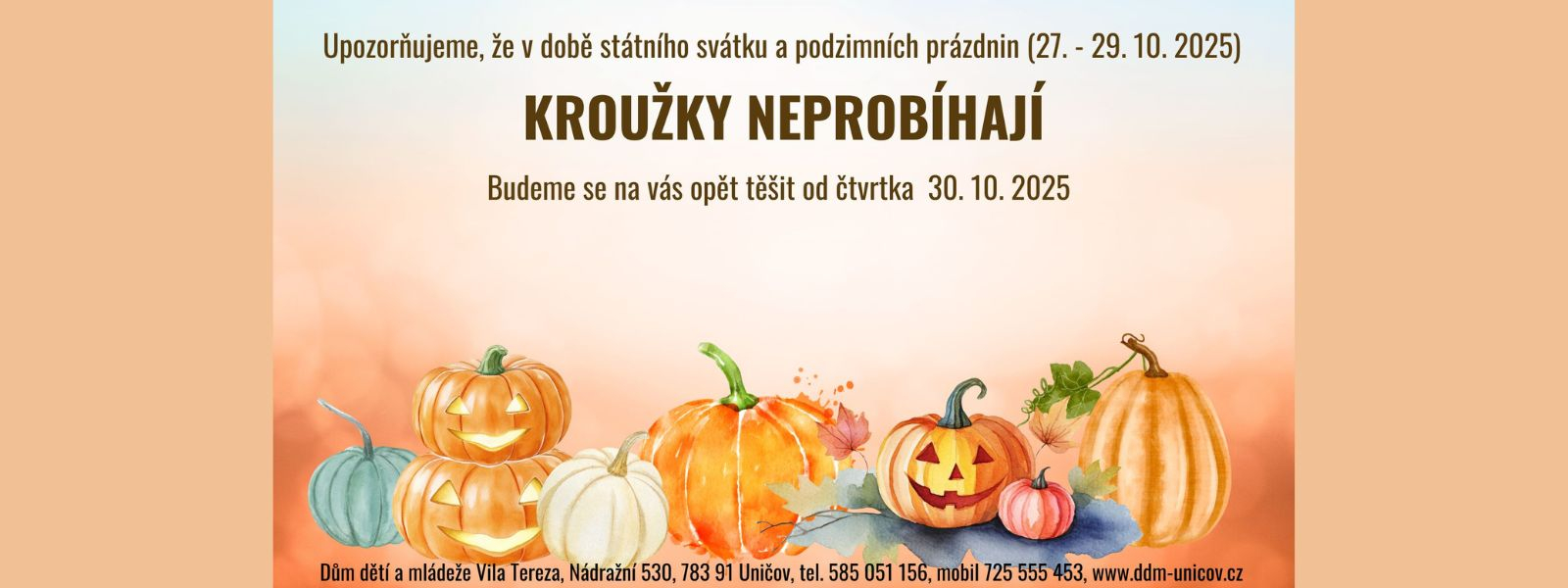V DOBĚ OD 27. - 29.10.2025 KROUŽKY NEPROBÍHAJÍ!