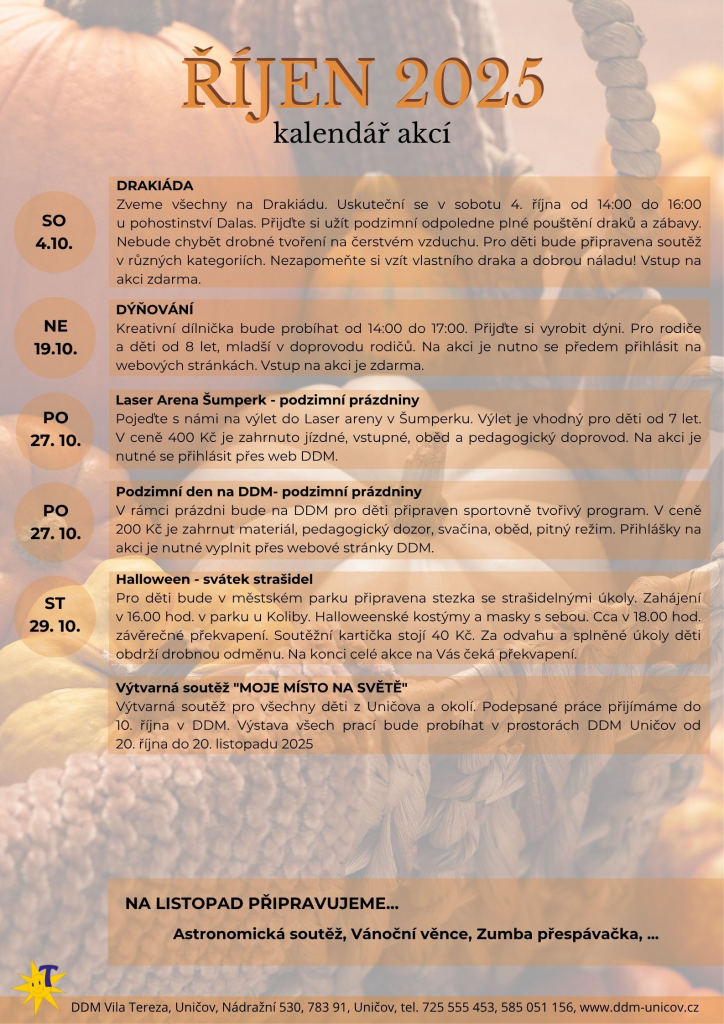 KALENDÁŘ NA MĚSÍC ŘÍJEN