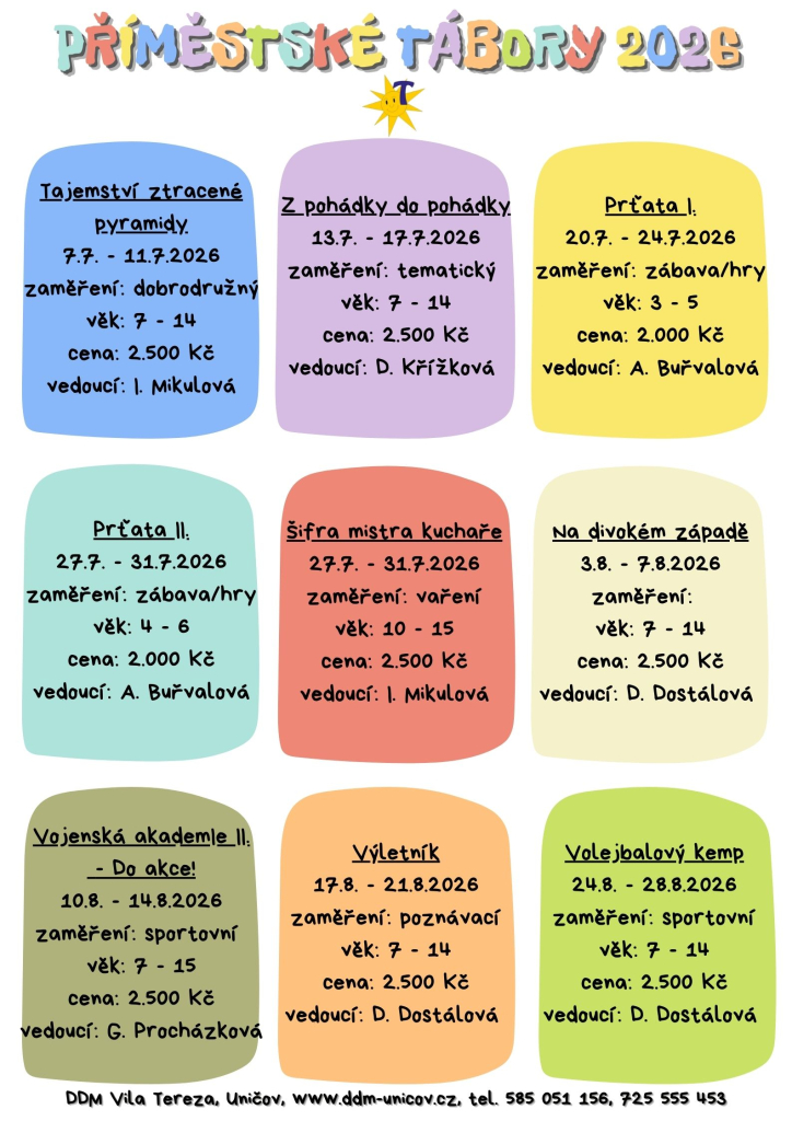 Letní tábory 2026 - PŘIHLAŠOVÁNÍ BUDE SPUŠTĚNO 1.2.2026